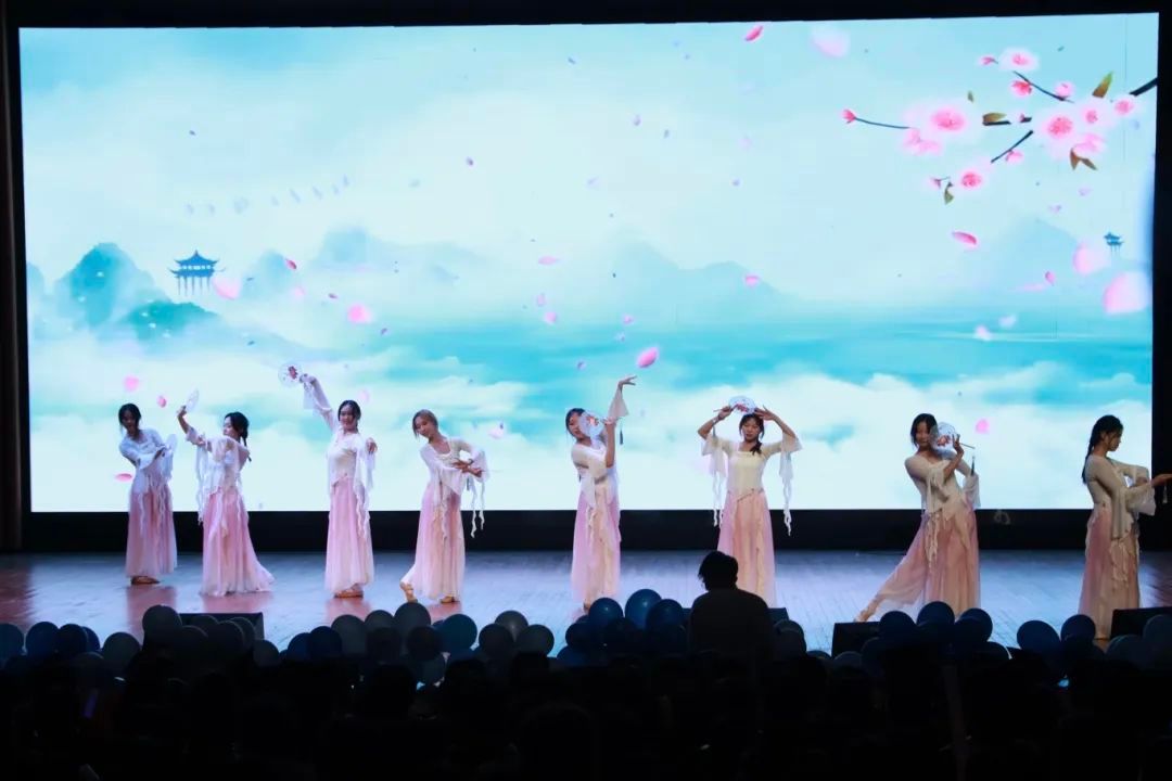 文工团舞蹈组带来的《入画江南》将全体同学置身于温柔的江南水乡。江南是一幅未干的画,舞者是那滴从伞尖坠落的墨——晕开涟漪,惊醒了沉睡千年的桥与船。