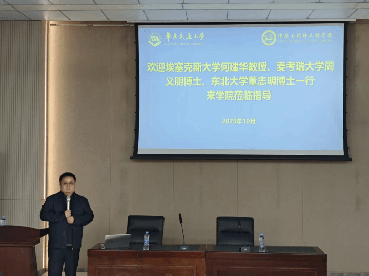 。英国埃塞克斯大学何建华教授、澳大利亚麦考瑞大学周义朋助理教授、东北大学工业智能与系统优化国家级前沿科学中心董志明博士一行莅临学院开展学术交流,副院长袁朝晖出席。