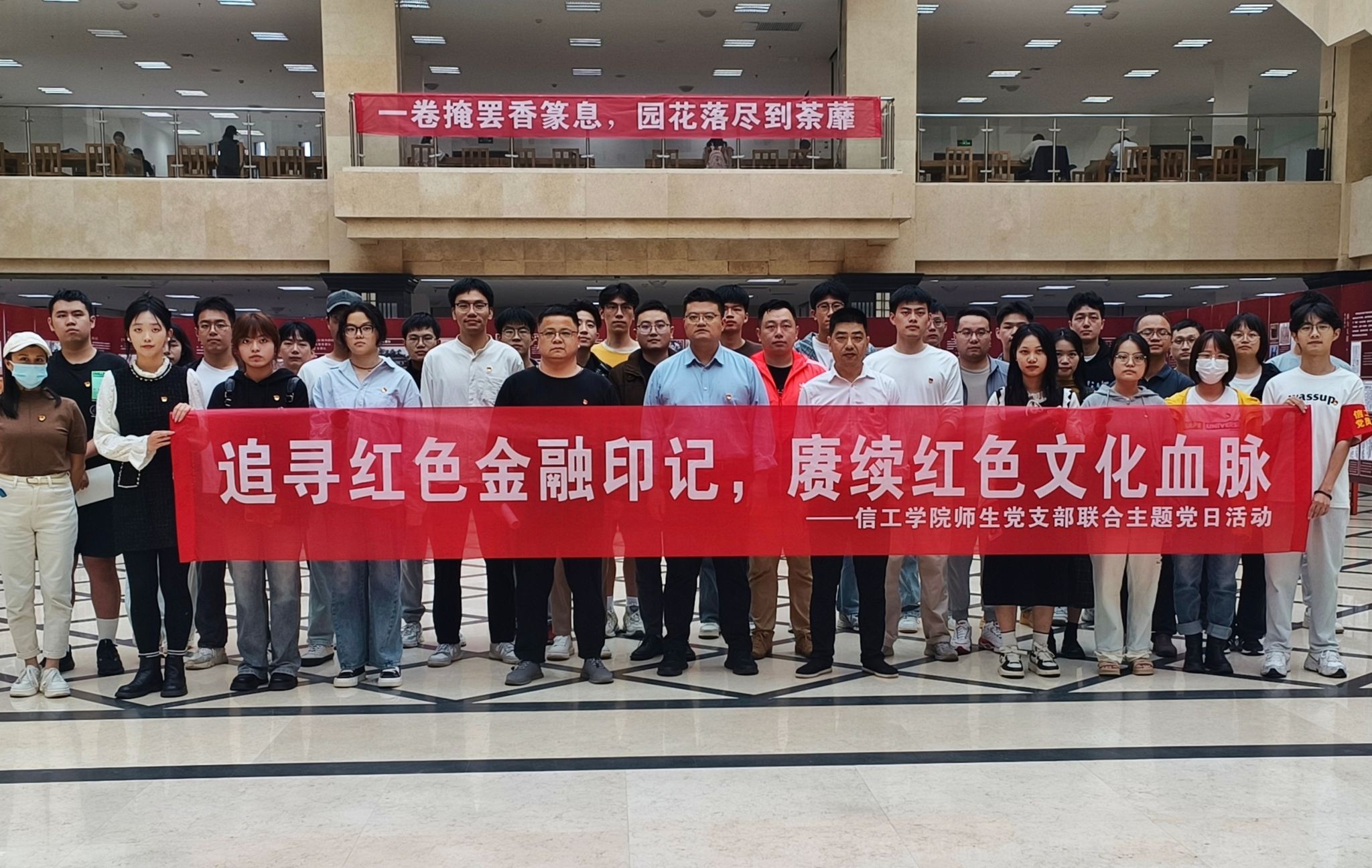 组织师生党员前往北区图书馆三楼联合开展“追寻红色金融印记,赓续红色文化血脉”主题党日活动,参观“江西红色金融历史图片展”。