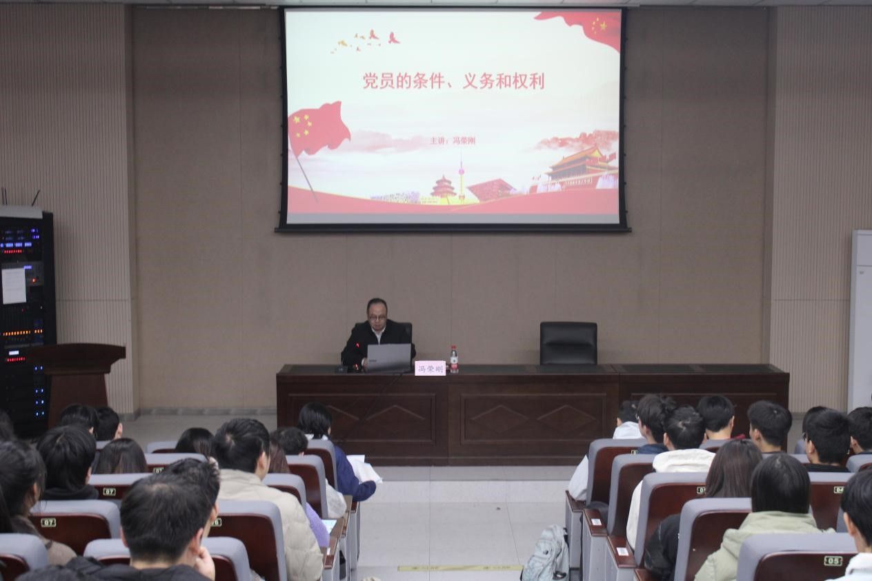 分党校于教五栋108报告厅举行第一期发展对象党课培训第一讲课程。此次培训由学院党委副书记冯荣刚主讲,带领学员深入学习《党员的条件、义务和权利》。