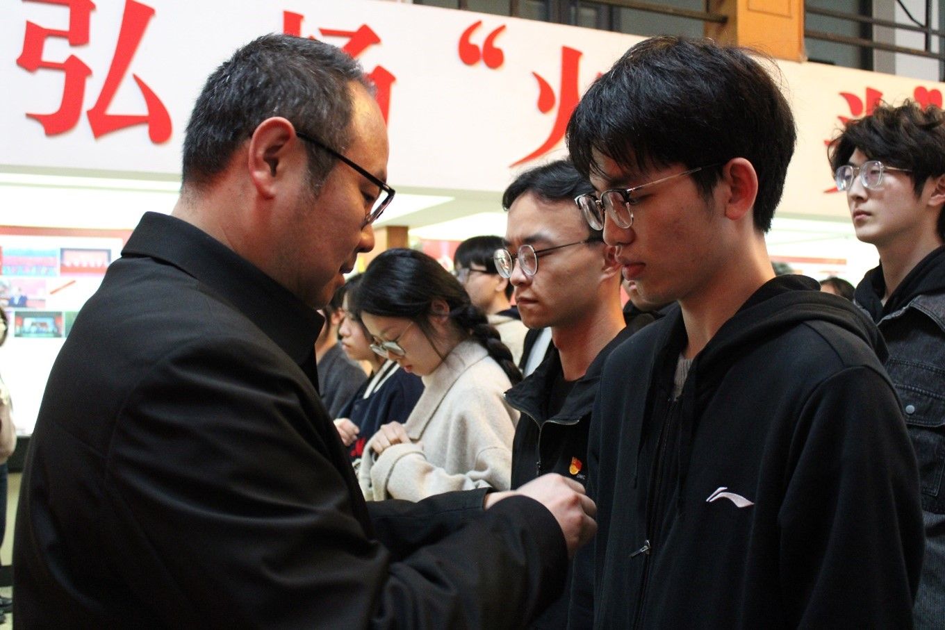 党教中心在一站式服务中心举行新发展党员入党宣誓仪式。学院党委副书记冯荣刚出席仪式并讲话,党委组织员黄芳、刘通,党教中心组织部成员以及第一期预备党员参加,党委委员、组织员王业贵主持仪式。