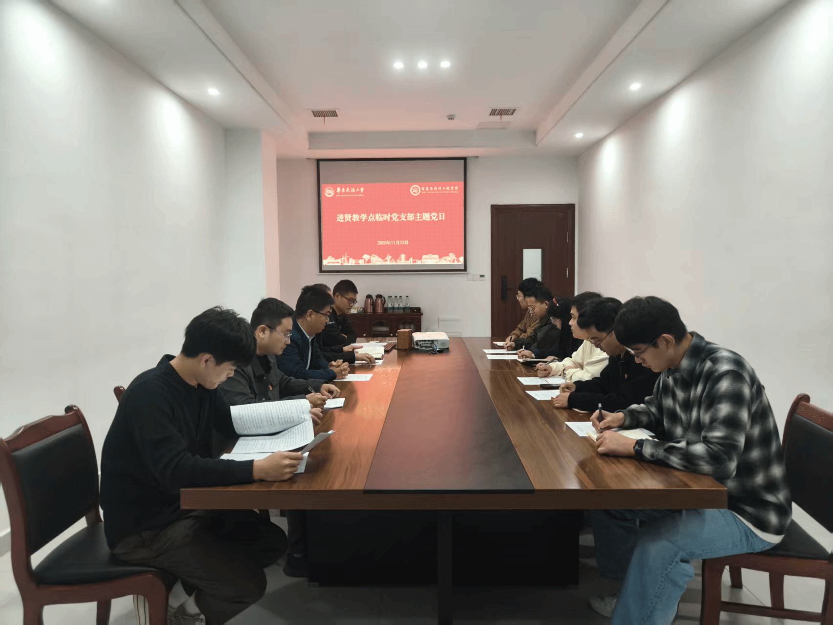 11月12日,学院进贤教学点临时党支部在进贤校区综合楼610会议室开展“学习贯彻党的二十届四中全会精神”主题党日活动。学院党委书记魏永峰、党委副书记冯荣刚、党委兼职组织员刘通、院团委副书记肖志鹏列席会议,临时党支部全体党员参会。会议由党支部书记洪亚聪主持。