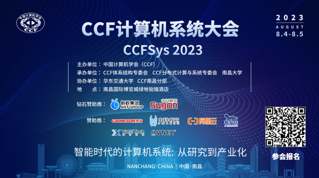 2023年8月4–5日,2023年中国计算机学会计算机系统大会(CCFSys2023)在江西南昌隆重举行。大会以“智能时代的计算机系统:从研究到产业化”为主题,聚焦智能时代的计算机系统相关技术,1400余位中外专家学者、企业代表参会,聚焦智能时代的计算机系统相关技术,畅谈国际前沿学术观点。本次大会包含6场由院士领衔的大会特邀报告、18场围绕计算机系统体系结构、新型计算软硬件系统、大模型计算、图计算等热门话题的技术论坛和1场亮点纷呈的企业展览,为参会人员带来了前沿技术、先进理念、精彩观点深度碰撞交融的饕餮盛宴。