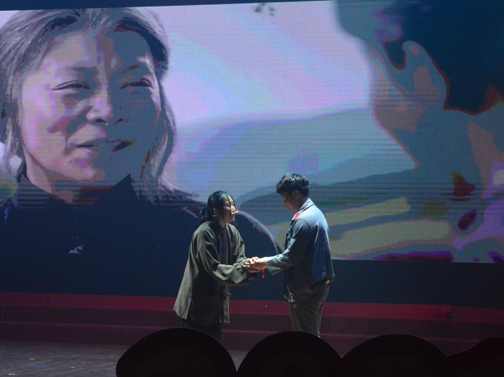 信息学院以“红肚兜”为引讲述杨荣显一家八子,满门忠烈的英雄事迹,进而讴歌从古至今无数共产党人身上不怕牺牲、无私奉献的精神。故事中,母亲在儿子参军前送的红肚兜,一针一线所含的不仅是对孩子的牵挂,更是对党和红军战士的拥护,是对幸福安定的期待。演讲过程中,母亲对儿子的思念,儿子战场赴死姿态,演员表现地十分细致,观众为之动容。演讲者声声透露真情,最后一句呐喊“中国有我”,与观众形成互动,赢得热烈的掌声。