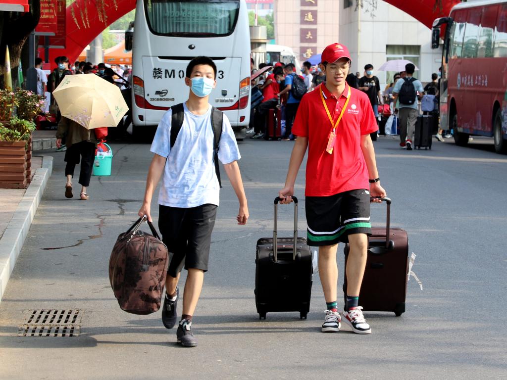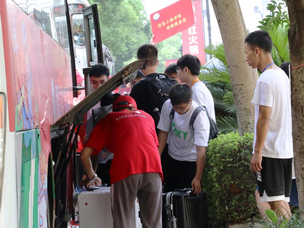 为让21级新生在入校后能够更加快速方便的办理入学手续,9月4日学院组织了迎新志愿者,在南区校门口以及新生大巴各站点接站,引导新生登记,帮助新生拿行李。