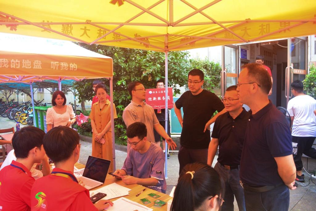 学院院长赵军辉、党委书记蔡卫平、党委副书记何仲坚、全体新生辅导员一同来到新生报到点了解新生报到的具体情况并前往宿舍看望新生,与新生亲切交谈,了解新生入学情况,对初次离家远行求学的同学送去关怀,帮助其尽快适应大学生活。