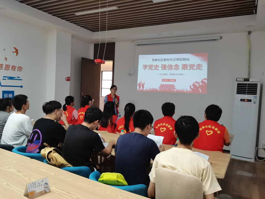 会上,悦美社区学习雷锋志愿服务工作站负责人徐进发以“学党史、强信念、跟党走”为主题,向志愿者进行志愿服务培训,为大家介绍了志愿服务的具体准则。他以雷锋的故事帮助同学们领悟志愿服务的内涵,同时结合习近平总书记在给“郭明义爱心团队”回信里提到的雷锋精神,鼓励大家将雷锋精神内化于心、外化于行。培训会议联系实际、深入浅出,受到志愿者们的广泛好评。