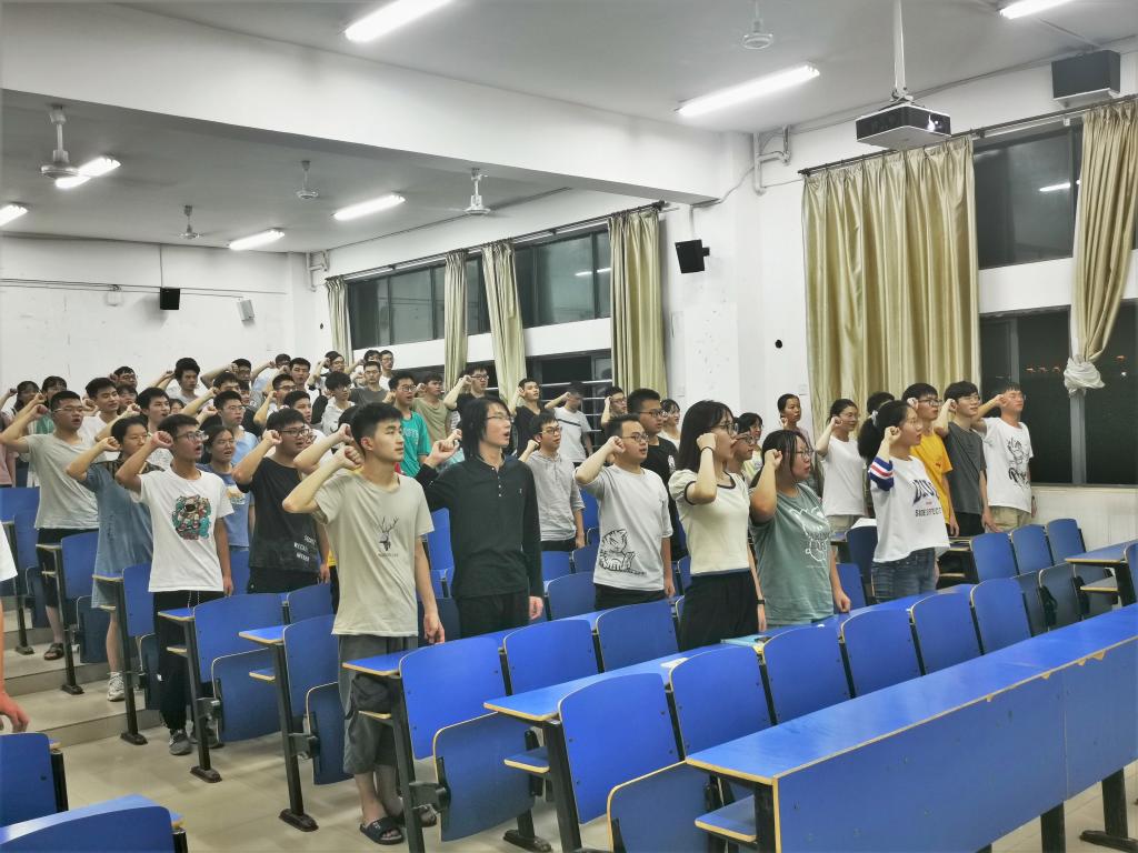 何仲坚大家提出了三点希望,一是加强百年当是学习;二是努力传承红色基因;三是勇担民族复兴重任。最后由全体学生共同宣誓:请党放心,强国有我!