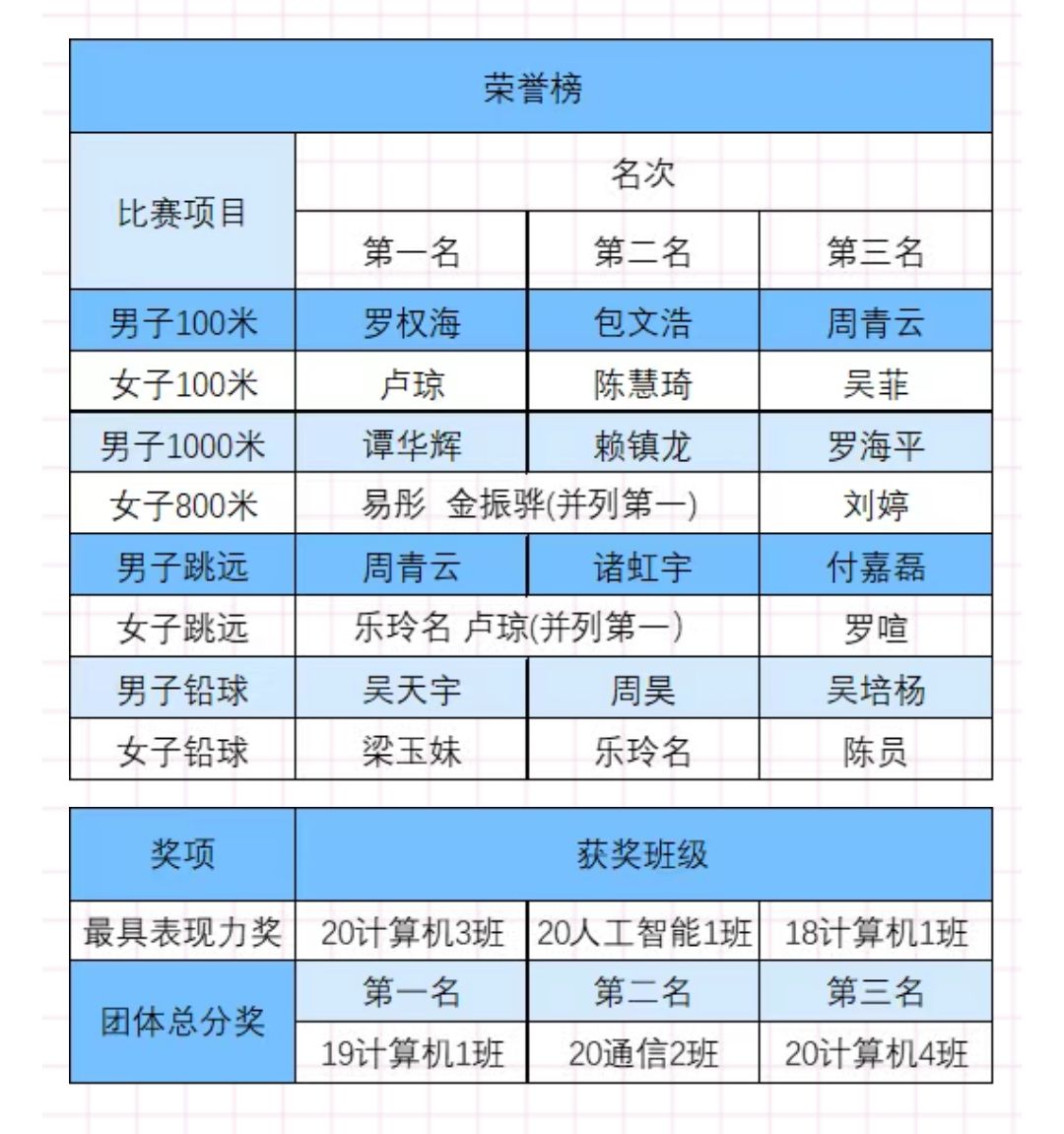 经过一天的激烈角逐,比赛结果正式揭晓。19级计算机一班荣获团体总分第一名,20级通信工程二班和20级计算机类四班分别获团体总分第二名、第三名。最具表现力奖20级计算机类三班、20级人工智能一班、18级计算机一班获得。
