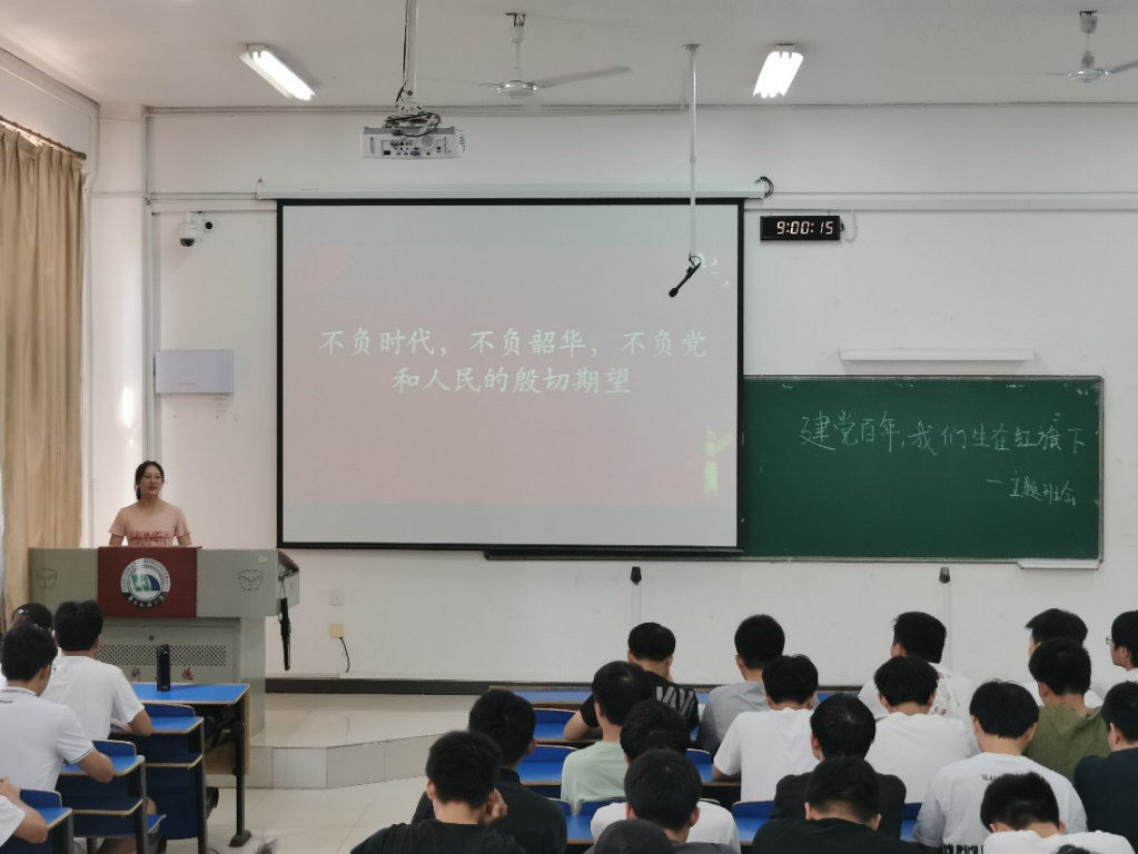 为深入学习习近平总书记“七一”讲话精神,庆祝中国共产党成立一百周年,9月11日,20级计算机1班、3班与物联网1班于逸夫楼111室开展以“建党百年,我们生在红旗下”为主题的开学第一课。辅导员李萌萌出席会议,全体同学与会。