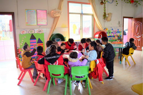 活动前,班级分为九个小组,并分配每个小组前往不同的班级,活动中,志愿者以折纸、户外游戏等多种活动类型同小朋友们一起体验感恩的重要性。“先要把纸对折两下,然后再翻过来,对啦,真棒……”,3班的同学们亲自上阵,耐心地教着三年级的小朋友用纸折爱心。
