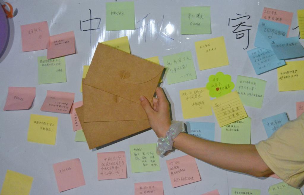 天色入暮,此次活动正式开始。同学们在工作人员处提交手写信件,换取糖果,情真意切的家书寄托着同学们对于家的想念,给一年后自己的寄语承载着同学们拼搏向上的决心。同学们在活动现场制作月饼,搓馅料、压模具,体验着其中的乐趣,互相分享着喜悦,现场气氛活跃。同学们三三两两结伴成行,在灯谜前驻足思索,在留言墙上贴下对思念之人的祝福。这富含诗意的灯谜活动让同学们感受到了学校的温馨,也让同学们意识到自己从只身一人进入大学到如今友谊遍地开花,其实自己并不孤单。此外,现场还有制作小橘灯等妙趣横生的小活动,为同学们的中秋节添加色彩。