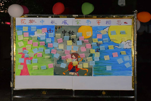 “家人团圆,双节快乐!”海报墙上,一封封亲笔写下的家书也寄托着小花椒们的乡愁,“中秋虽然不能回家,但希望姥姥姥爷可以开心地过中秋。”小小的便利贴上,字里行间是对家人的寄语、对未来的期愿。
