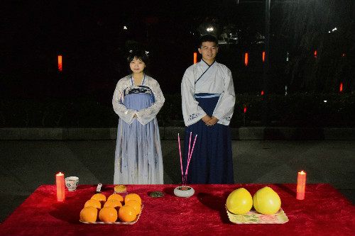 皓月当空,水光粼粼。活动伊始,身着汉服的信息学子在摆放着橘子、柚子、香烛等祭典物品的桌前进行庄重的祭月仪式,前来参加活动的学生在舒缓的吟诵中感受传统文化的独特魅力。“共卫火种且补天”、“为爱国心点下赞”……谜面的字里行间中洋溢着传统文化和社会正能量的气息,各色花灯的照耀下,引来无数路人驻足观看。猜出灯谜的喜悦和丰厚奖品吸引,更是激发了人们一场又一场的头脑风暴。灯火闪烁,人群熙攘,小橙灯的制作现场也十分火热,制作者脸上洋溢的笑容随处可见。
