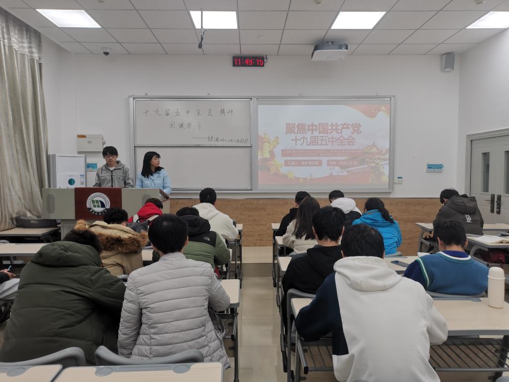 为深入学习党的十九届五中全会精神,牢固理想信念,加强思想观念。11月25日,19信息工程一班于25栋106开展“学习全会精神”为主题的团日活动。