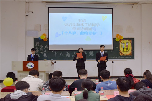 活动中,在“回忆青春”环节,20级学生需要回答四个问题:十八年人生最难忘的一件事是什么?最感激的人是谁?哪一个瞬间突然意识到自己已经长大?成人后最想做的一件事是什么?多名同学踊跃发言,其中20级通信一班龚俊超感激曾经的对手对他的激励;20级计算机类四班程月轩感慨于自己一夜间的成长;20级计算机类二班解政洋表明了强烈的入党愿望,自信而豪迈。三人的发言真情实切,赢得全场掌声。“歌颂成年”环节里,文工团主持组史启良和林芷清二人朗诵《十八岁,献给青春》,声情并茂,引起全场共鸣。现场参与人员观看了学院发展的相关视频,对学院有了进一步的了解。