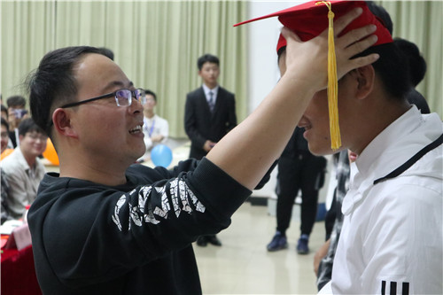 活动临近尾声,艾国金为大一学生代表加冠,让学生们更有成人的仪式感与责任感。现场学生作出成人宣誓,并写下对学院“成年”的祝福和对自己未来一年的展望。
