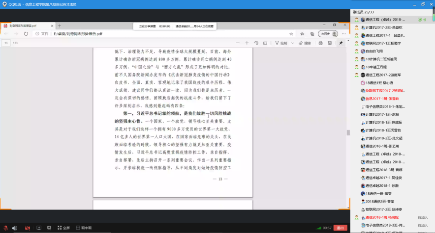 信息学院第八期世纪英才召开“学习省委书记刘奇同志形势政策报告”线上主题班会