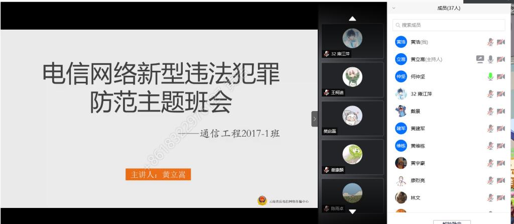 随着诈骗方法的不断增多,大学生被诈骗人数的不断提高,12月28日,17通信工程辅导员何仲坚组织召开线上反诈骗安全主题班会,班长黄立嵩主持。