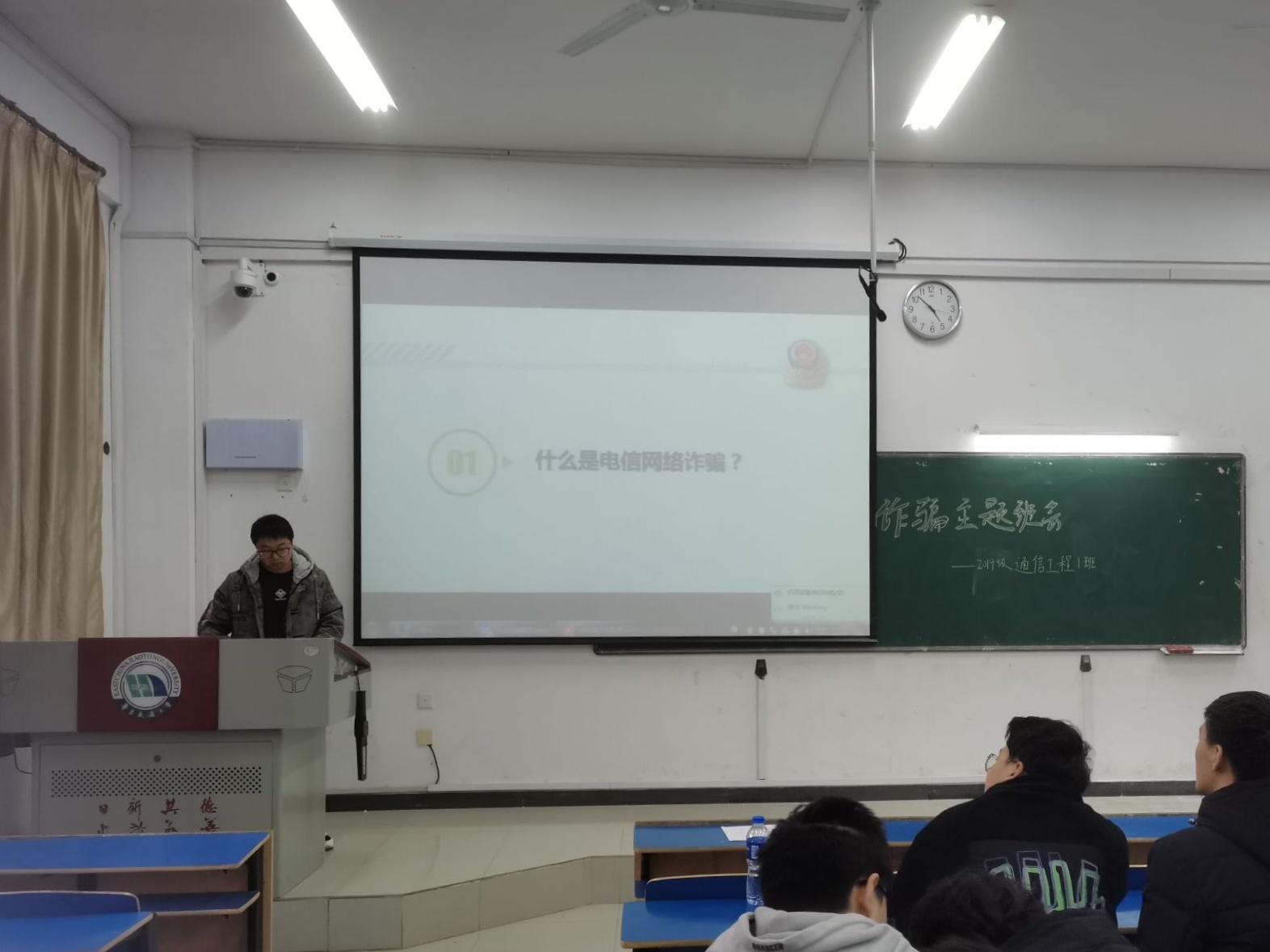 为进一步提升同学们防范电信网络诈骗的意识,切实保障广大学生群体的财产安全,12月28日,19级通信工程1班于逸夫楼召开关于防范电信网络诈骗主题班会。