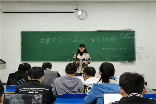 为深入学习贯彻党的第十九届五中全会精神,让每位同学切身体会此次会议带来的巨大影响,11月24日,信息学院19级计算机1、2班召开“贯彻党的十九届五中全会精神”主题班会。