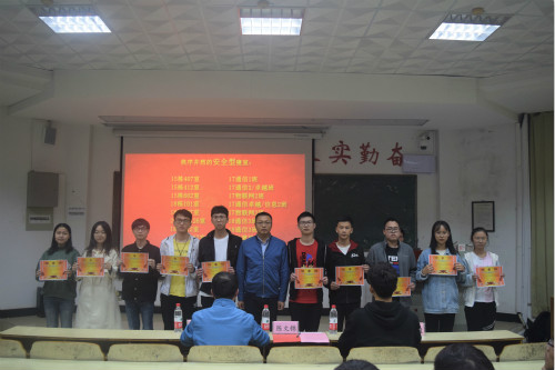 学生宿舍文明建设工作方案》,学院评选出2018—2019学年第二学期特色文明宿舍共五十个,并分五类各十个进行表彰:蓬勃向上的文体型宿舍,广泛参与的实践型宿舍,干净整洁的卫生型宿舍,秩序井然的安全型宿舍,比学赶超的学习型宿舍。会上,艾国金宣读获奖宿舍名单,并与陈文锦共同为获奖宿舍寝室长颁发奖状。