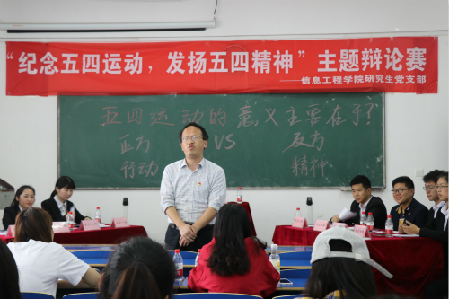 为纪念五四运动100周年,传承五四精神,鼓励广大青年学子担当起新时代的历史使命,4月24日,信息学院研究生党支部于逸夫楼318室举办“纪念五四运动,发扬五四精神”为主题的辩论赛,正反方针对“五四运动的意义主要在于精神还是在于行动”展开辩论。信息学院党委副书记何仲坚、华东交大辩论协会社长宋迦意、华东交大研究生会主席吴京颖等担任评委。