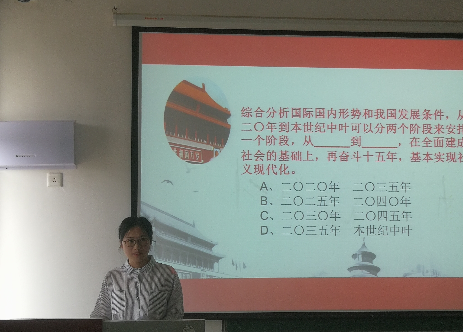 信息工程学院党委副书记何仲坚,团委书记陈文锦,研究生辅导员艾国金担任竞赛评委。竞赛题目从《党的十九大报告》、《中国共产党章程》和《中国共产党纪律处分条例》等文件以及学习强国APP、三会一课制度等材料中抽取。本次竞赛分为初赛和决赛两个环节,初赛环节均为选择题,题量较多且难度相对不大,记录每组答对题目数量,最后取答对题数前三的三支队伍进入决赛环节,决赛环节包括抢答题和主观陈述题,主观陈述题由选手根据抽选到的题目进行陈述,评委根据各组陈述情况进行打分。