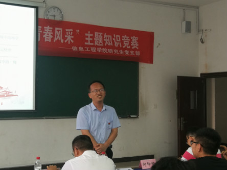 为增强爱国爱党思想,加强党员的政治理论学习教育,提高党员队伍素质,进一步落实“两学一做”学习教育常态化、制度化,落实落细“三会一课”制度。2019年5月29日,信息工程学院研究生党支部组织开展第一届“知党爱党”知识抢答竞赛,以加强研究生党员和入党积极分子对党的理论知识学习,通过抢答竞赛让研究生党员和入党积极分子找到差距,努力提升自身党性修养,为成为合格的共产党员不懈努力。
