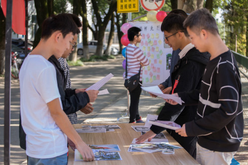 与此同时,同学们也走出教室,身体力行,以多种户外活动形式表达自己对先烈的缅怀之情。其中,16级信息1班和通信2班的同学在校园内摆起摊位,以辨认先烈照片的形式巧妙地为过路的人们讲述相关英雄事迹,并邀请同学们在展板上写下自己对英烈的尊敬与悼念;18电子信息2班的同学则走进江西革命纪念堂,近距离瞻仰为新中国抛头颅洒热血的革命先烈。