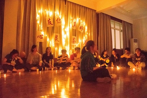 “茶语馨香”环节伊始,淡淡的烛光,照亮漆黑教室的每一角,也照亮围坐成圈的每位同学的心。同学们放下手机,闭上双眼,放松心情,静静聆听暖心的情感电台,舒缓的声音浸入心田。伴随着轻柔的音乐,大家开始倾诉自己深藏心底的故事,或友情、或爱情……