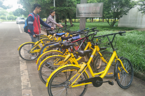 16级通信二班开展“整理乱停乱放自行车”志愿服务活动