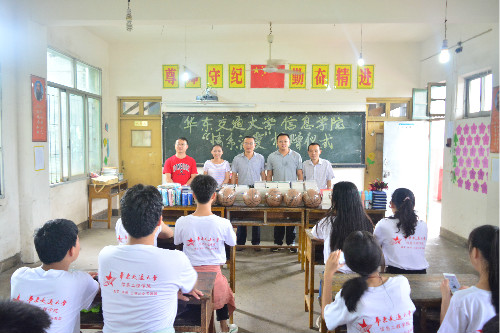 为纪念共青团建团九十五周年,积极开展“一学一做”,传播青春正能量。7月1日,信息学院第六届世纪英才全体成员赴南昌市新建区江变小学开展暑期“三下乡”社会实践活动并举行捐赠仪式。信息学院团委书记陈文锦、团委副书记杨青共同出席。
