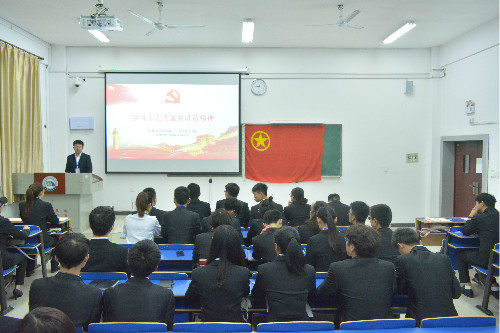 为深入宣传贯彻十九大重要思想,增强同学们的爱国主义意识。10月27日,信息学院学生会主席团与部长团于逸夫楼110室观看了十九大报告总结,深入学习十九大重要讲话精神。