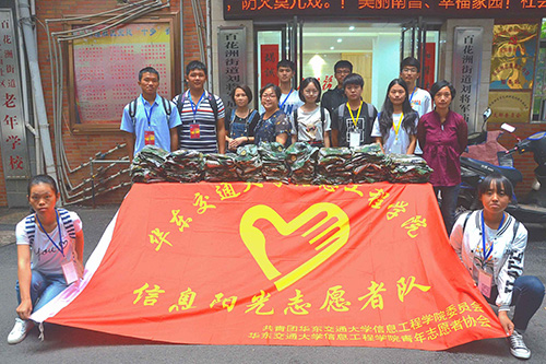 为发扬“奉献、友爱、互助”的志愿者精神,让新生切身参与到志愿服务活动当中。9月21日,信息学院青协带领由九名新生组成的“信息阳光志愿队”赴刘将军庙社区进行衣物爱心捐赠活动。