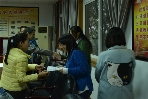 黄清华老师就去年新闻宣传工作进行总结以及对未来两个月新闻小组的工作提出要求,陈文锦老师提出对新闻小组的培训计划并就新闻撰写进行指导。杨青老师宣读《关于公布院2015-2016学年新闻宣传小组任命名单的通知》,与会领导为新闻小组成员颁发聘书。