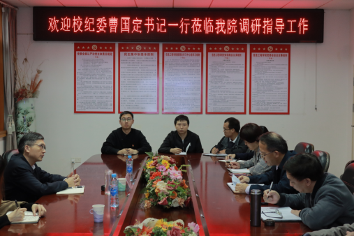 11月10日,校党委委员、纪委书记,驻校监察专员曹国定到信息学院调研指导工作,院党委书记何仲坚、副院长罗晖、系部教师代表及辅导员代表参会