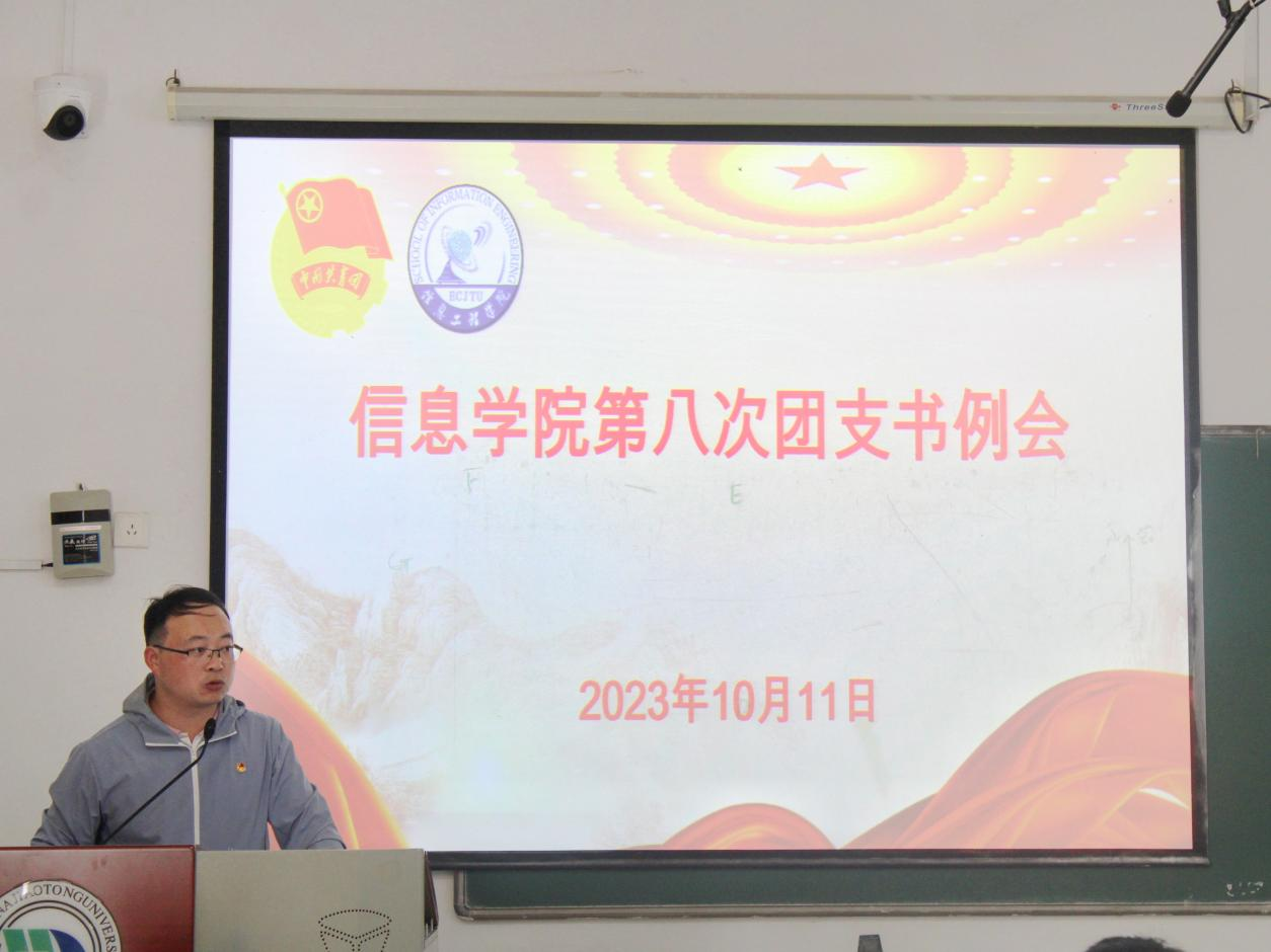 为进一步加强学院基层团组织建设,高效开展近期各项工作,10月11日,信息学院于14栋109室召开第八次团支书例会,院团委书记艾国金,院团委副书记李萌萌出席本次会议。