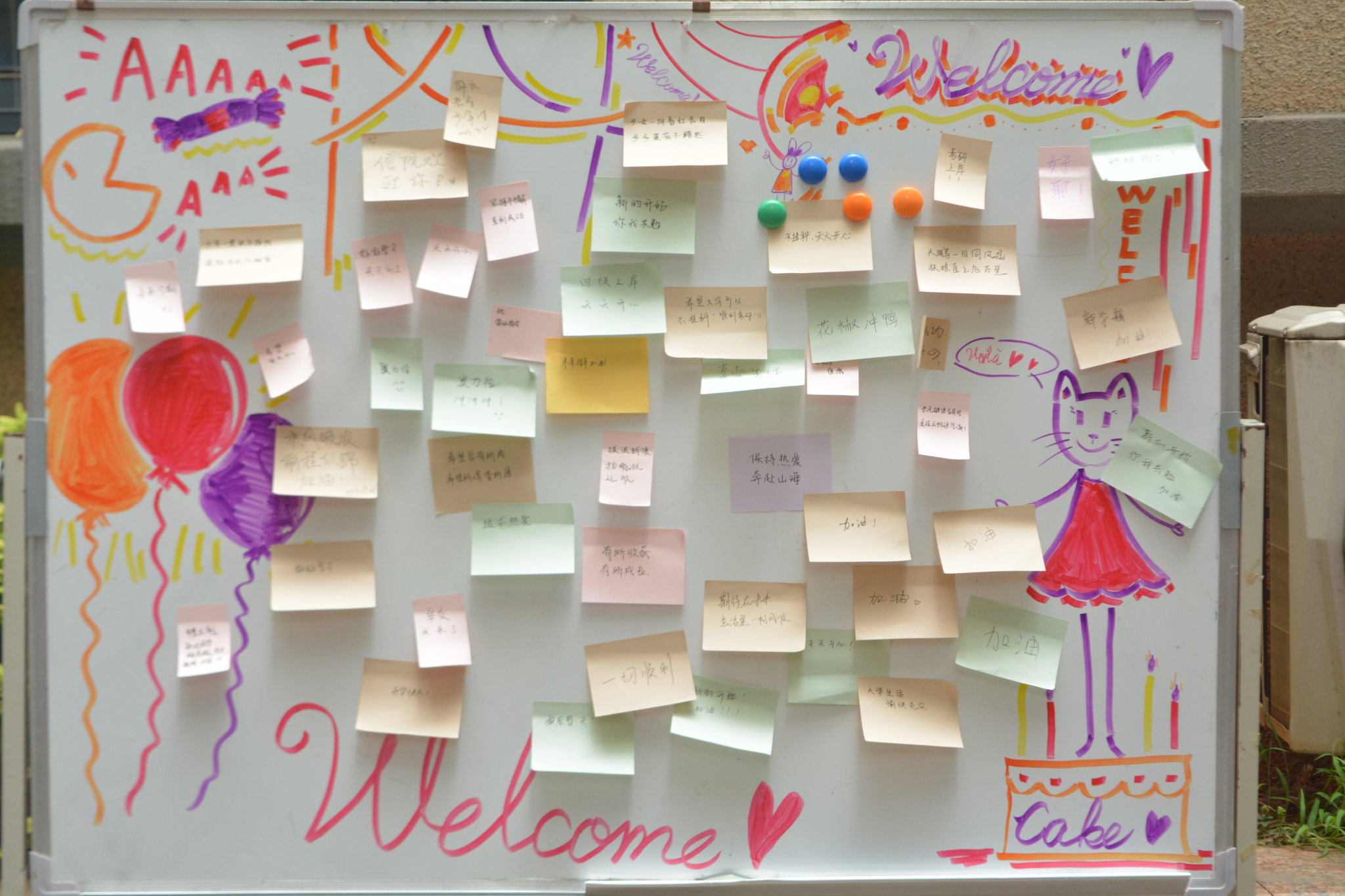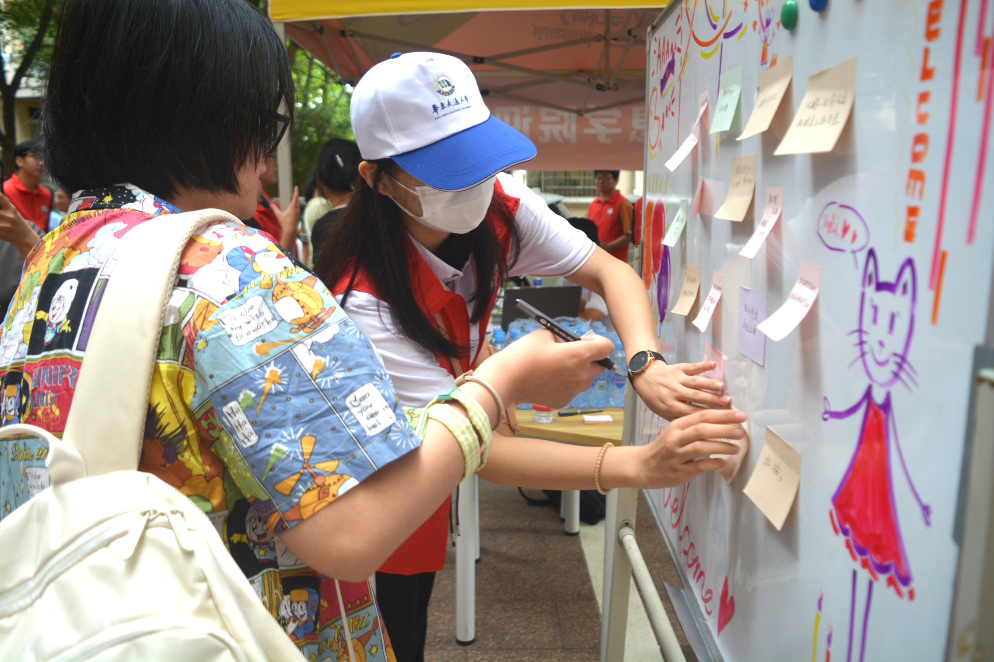 新生们在心愿墙上贴上自己的心愿