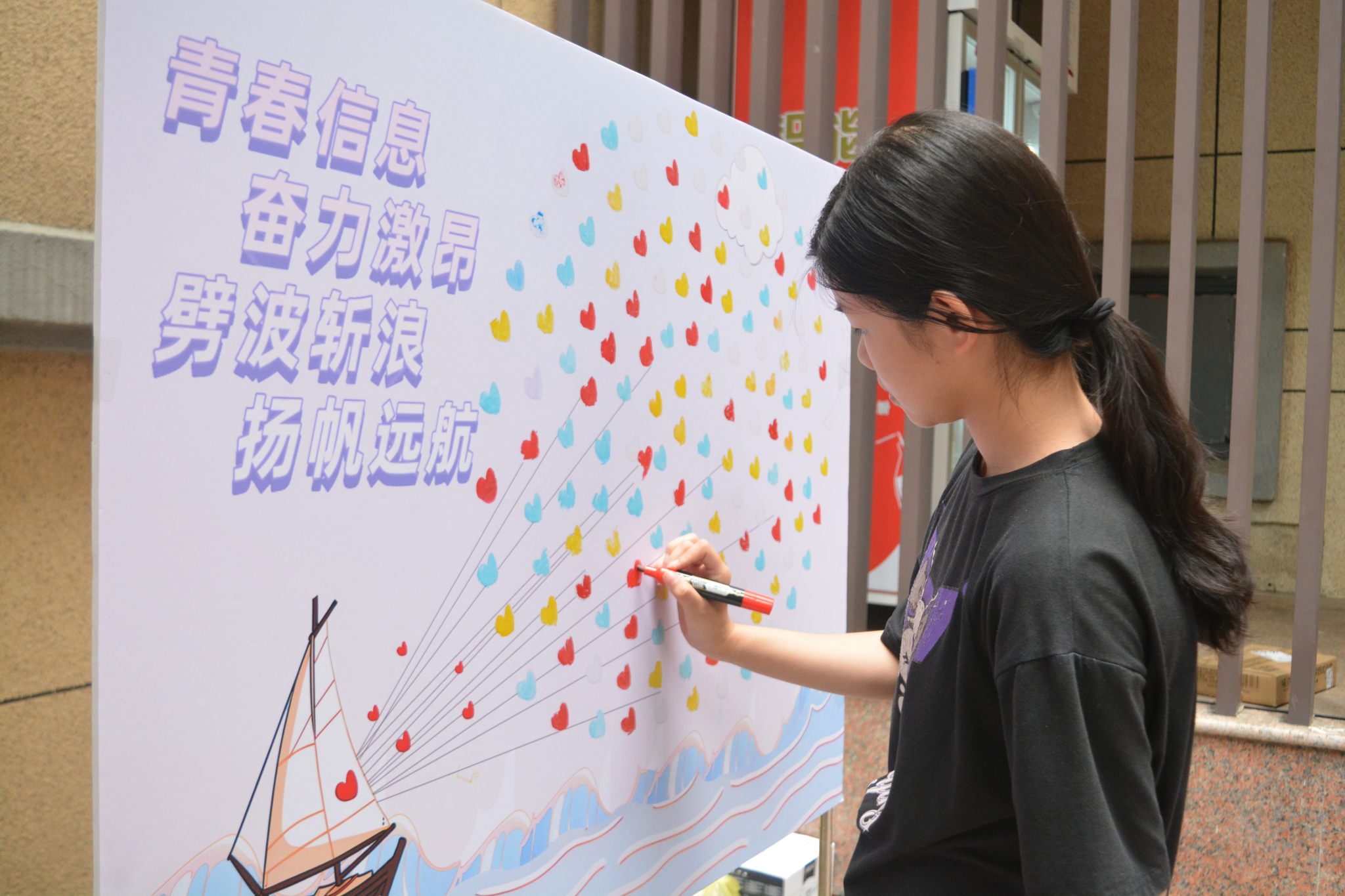 新生们涂画爱心板
