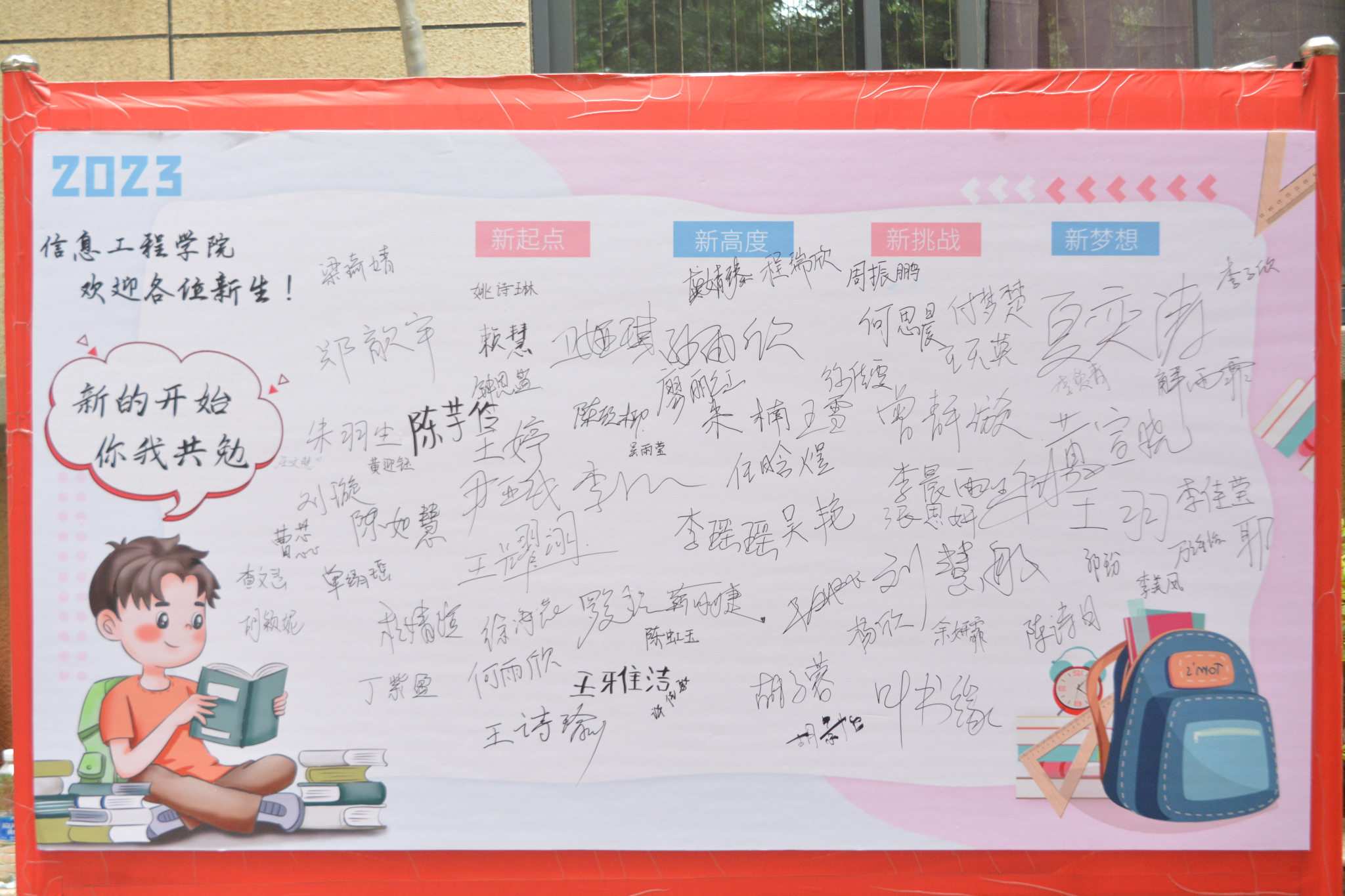新生们在签名墙上签名