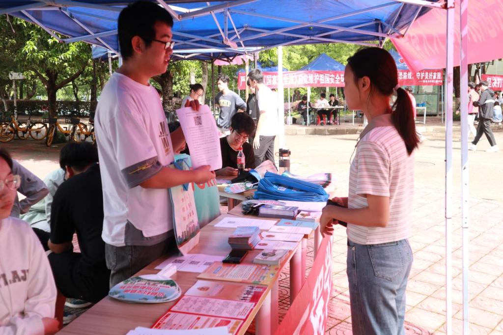 本次活动就反恐知识向广大师生做了科普宣传,详细介绍了什么是恐怖主义、什么是恐怖活动,恐怖主义与邪教的关系,并呼吁大家提高国家安全意识,积极举报、制止一切危害国家安全的行为。此外,工作人员为参与活动的同学赠送了国家安全知识手册、团扇等纪念品。