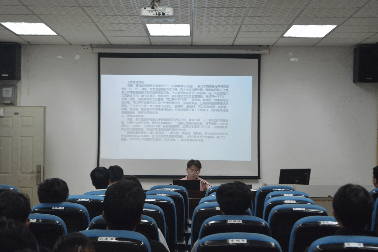 会上,院生活权益部分享了详细的排班查寝安排。查寝按照寝室评分标准严格打分,包括卫生、床铺、物品摆放等方面。每次查寝将通报最高分和最低分,表彰和奖励优秀宿舍,激励同学们保持寝室卫生。同时,学院将重点查处违规电器,确保寝室安全。