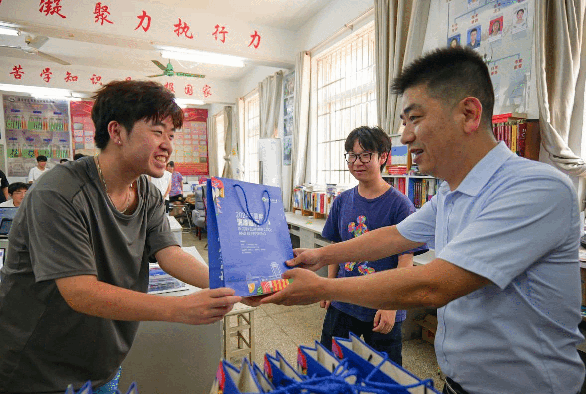 “院领导专门为我们送来了学校精心准备的清凉大礼包,让我感受到学校学院对我们的贴心关怀和精心呵护。我们一定会珍惜暑期时间、勤奋学习,努力备考备赛,为学院争光,为学校添彩!”计算机科学与技术专业学生雷利清说。