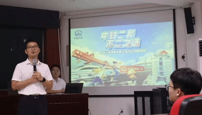 2005届毕业生首场专场招聘会在教35栋101学术报告厅举行,中铁二局集团有限公司在会上进行了宣讲,软件(道铁)、软件(桥梁)、软件(铁运)等专业毕业生参加了本次招聘宣讲会。