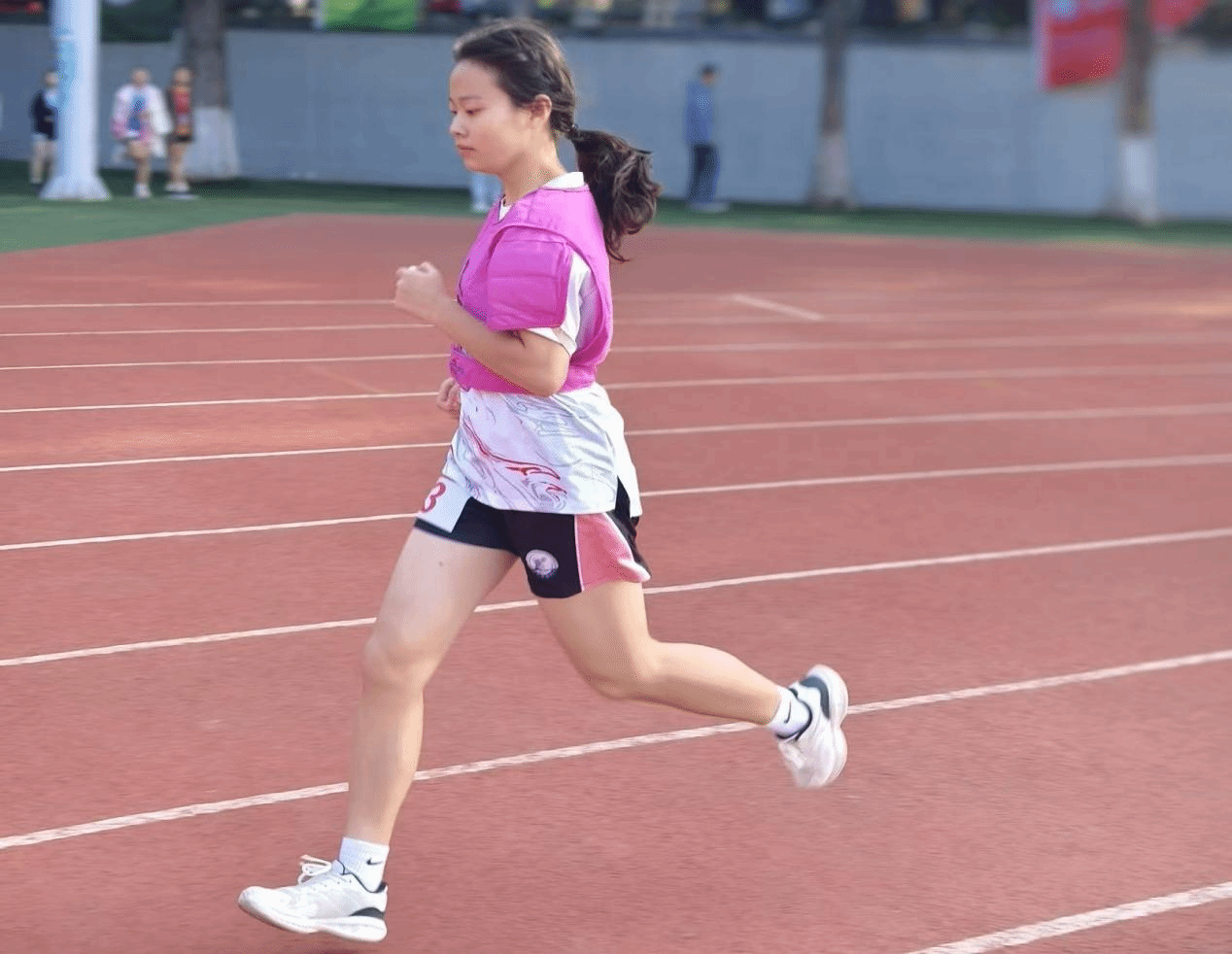 待发令枪声响后,梁晶晶调整好身位,分配好体力,去迎接3000 米的征程,这是一场对她体力与意志的双重考验;徐艺在比赛中始终保持着顽强的斗志,她步伐坚定,眼神专注,不断超越自我。赛道上,她们奋力奔跑的身影成为了一道亮丽的风景线,深深刻在每一位信工学子的心里。