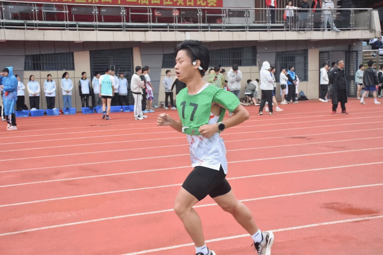 五千米是对每个运动员耐力与毅力的挑战。比赛中,黄盈资、陈涛在前期平稳发力,中期逐渐提速,在最后的时刻,他们咬紧牙关,向着最后的终点奋力冲刺,他们乘着风,超越了自己,到达了终点。