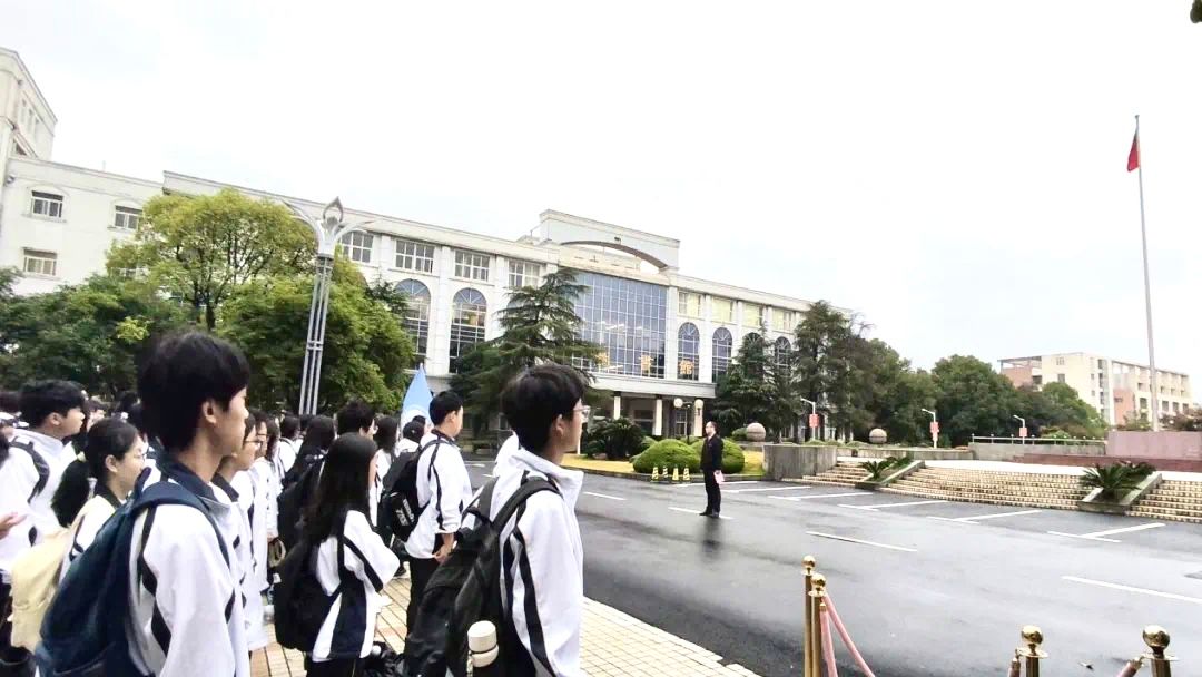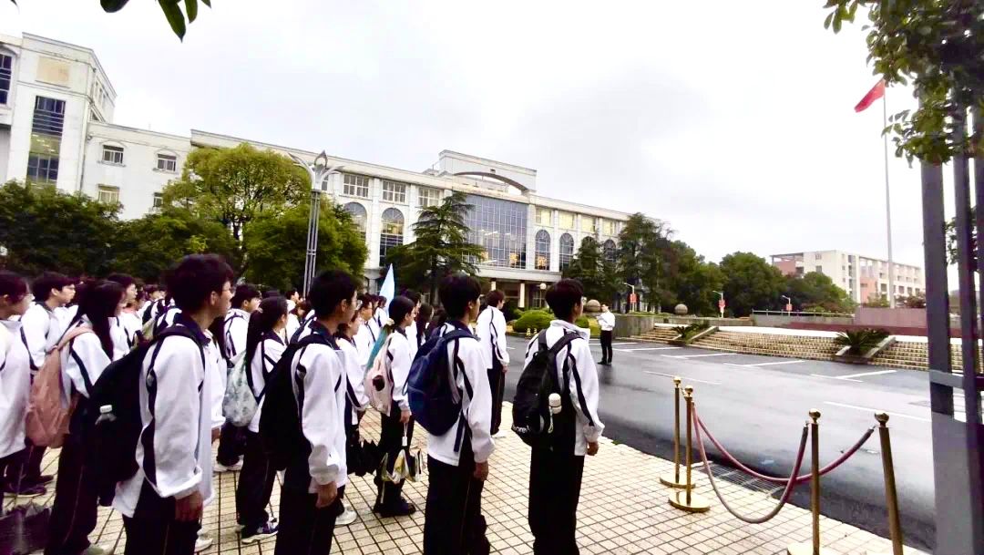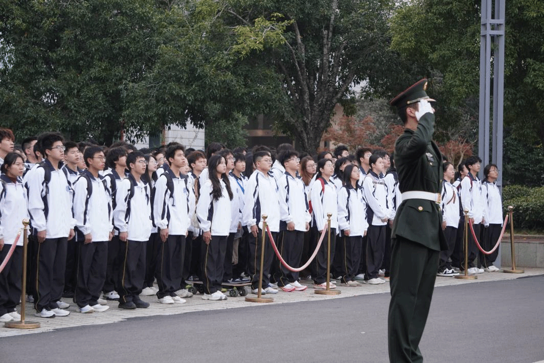 升国旗仪式于每日早晨7点开始。迎着朝阳,学校国旗护卫队队员昂首挺胸、精神抖擞,迈着整齐有力的步伐走向升旗台。慷慨激昂的《义勇军进行曲》响起,全体师生齐唱国歌,向冉冉升起的五星红旗行注目礼。