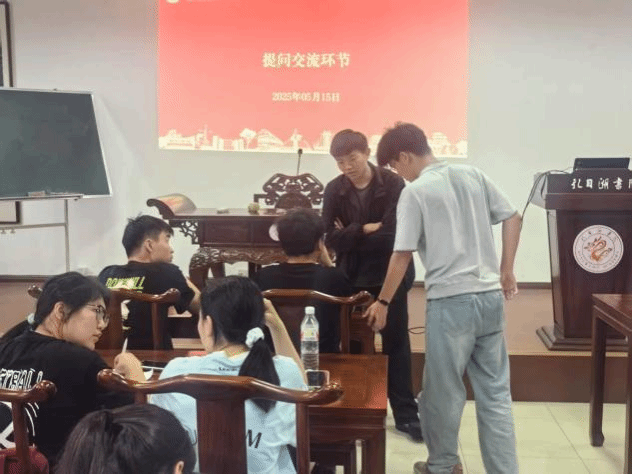 问答环节中,针对“如何提升活动实效性”“班级动员管理机制优化”等问题,刘帅航以“双融合”工作法为例,阐释专业实践与志愿服务结合路径;刘思涵结合工作经验,分享激励机制设计的思路与方法。问答环节气氛热烈,同学们纷纷表示收获颇丰。