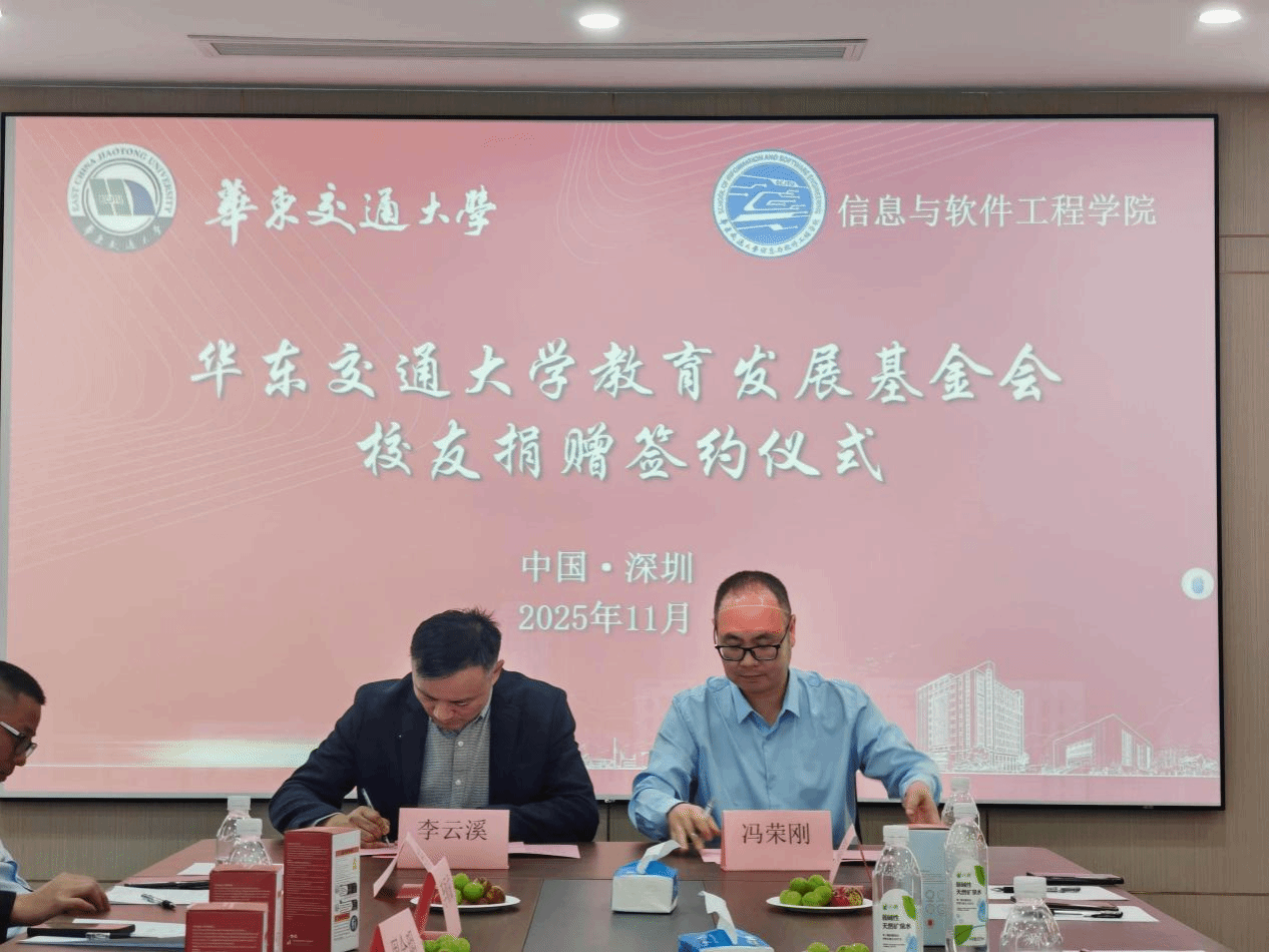 2001级计算机科学与技术校友、江西北辰轨道交通设备有限公司总经理余姝丹签署捐赠协议